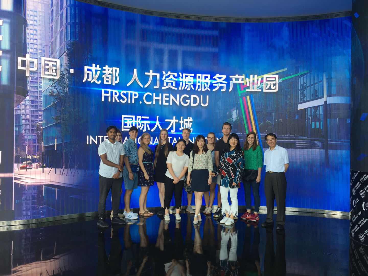 中国人力资源服务产业园区内,在成都高新区党群工作部,高新人才服务中心副主任周欣的带领下,陈维政教授一行和一带一路沿线国家驻中国的海外媒体记者一起,深入了解了成都高新区人力资源产业园和高新人才服务中心的发展和成果。在产业园内,管院师生听取了西南首家外籍人力资源服务公司-老外HERE公司的报告,在互动环节,德国学生们积极提问,联合创始人和首席市场官任丽娟为师生们解答了企业人力资源服务特色和公司实际发展状况,外籍人士在中国就业的相关问题,现场气氛热烈。会后,双方就学生实习实训,专业教育,企业实际人才需求等方面内容进行了深层次沟通,表达了合作的诚意,形成了初步意向。