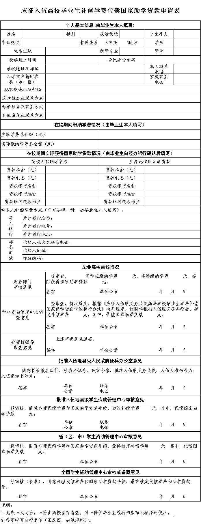 (五)次年1月15日前,县(市、区)教育行政部门将户籍为本县(市、区)的应征入伍高校毕业生的《应征入伍通知书》复印件及《应征入伍高校毕业生补偿学费和代偿国家助学贷款申请表》原件,寄送至应征入伍毕业生原就读高校学生资助管理机构。