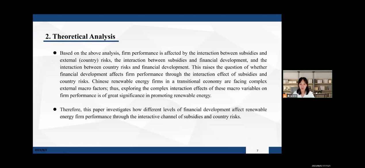 2023年8月4日,第三届互联网金融与数字经济国际学术会议(The 3rd International Conference on Internet Finance and Digital Economy,ICIFDE 2023)在线上召开。伟德国际1946源于英国会计与财务系教师张雯雯博士参会学习并作 《The Dynamic Threshold Effect of Financial Development on the Country Risks – Subsidies – Firm Performance Nexus: Evidence from Chinese Renewable Energy Firms》论文汇报交流。