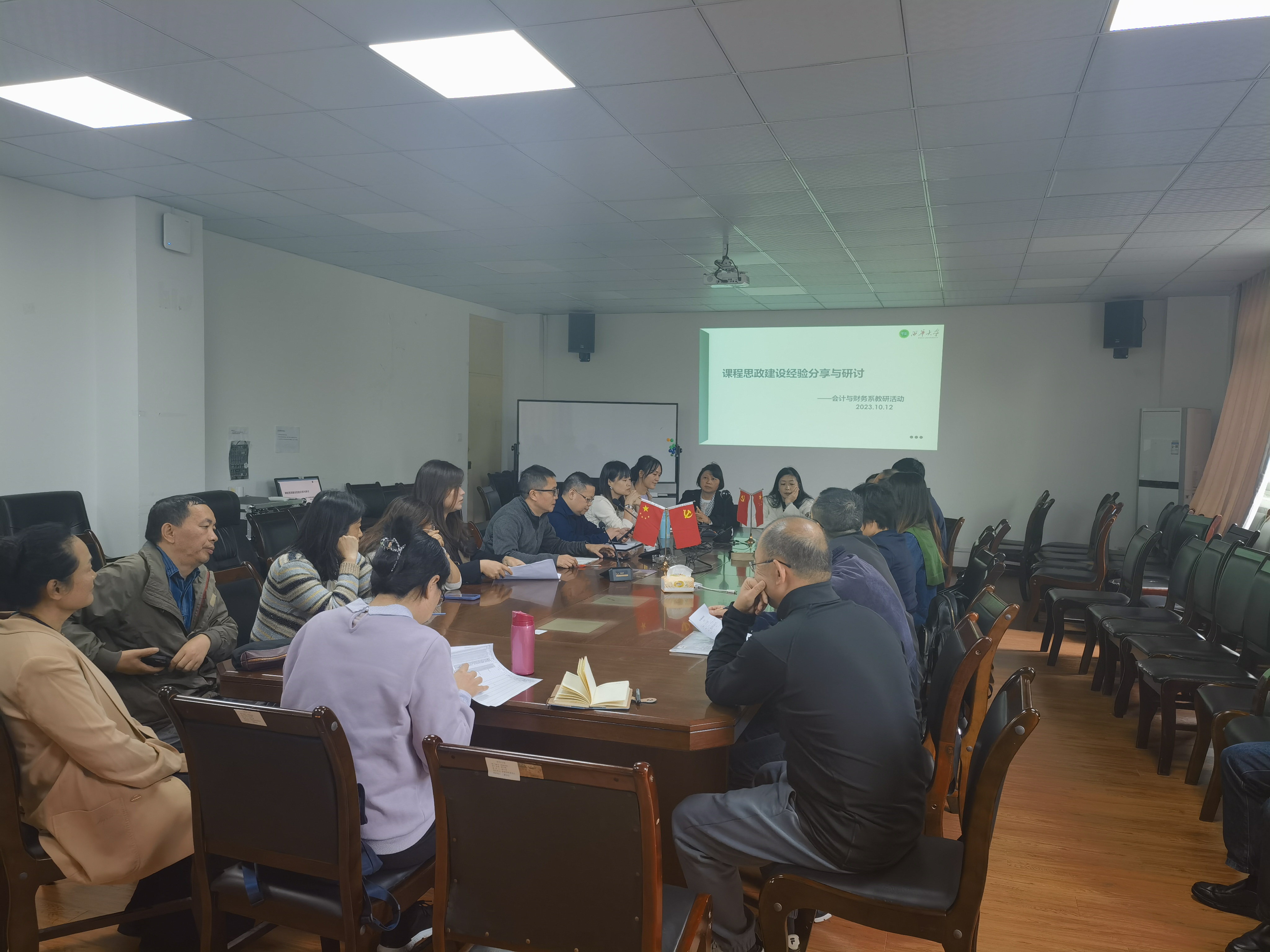 10月12日会计与财务系组织开展了“课程思政建设经验分享与研讨”的教研活动,学院副院长姚世斌教授及全系教师参加了活动,学校教学督导团唐云锦、吴总建和谢开勇教授旁听了此次活动。