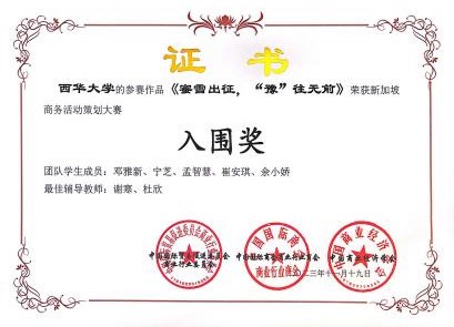 为提高我院学子商业创意能力,让伟德国际1946源于英国学子获得更多的实践经验和机会,我院积极组织学生参与全国商业经营挑战赛(创新创业赛)。在11月19日结束的河南三门峡市举办的全国商业精英挑战赛创新创业赛(会奖旅游策划赛道)总决赛中,我院物流专业学子邓雅新、宁芝、孟智慧、崔安琪、余小娇组成的众程旅游策划有限公司队在指导老师谢寒、杜欣的精心指导下以作品“蜜雪出征,“豫”往无前”勇猛夺魁,喜获全国一等奖的好成绩,同时入围新加坡商业活动策划大赛。两位指导老师也获得了“最佳辅导教师”称号。