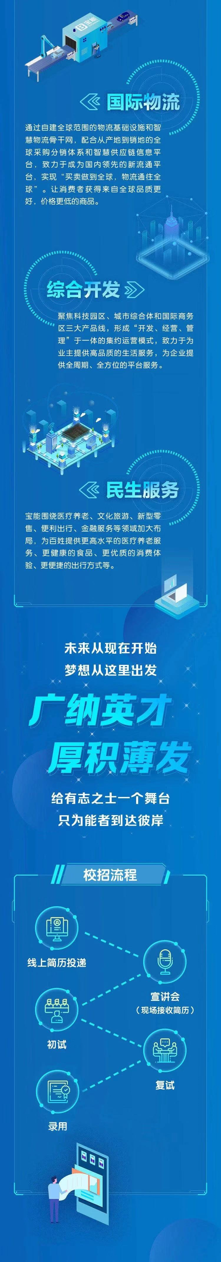 宝能集团2020校招--宝能集团布局高端制造、国际物流、民生服务和综合开发,超过15万员工,打造6000亿巨擘!宝能物流集团定位物流园区开发及运营、供应链管理、新流通业务、大宗商品等领域。