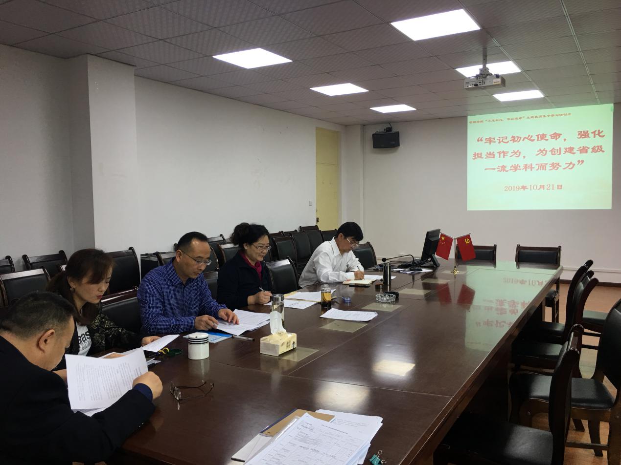10月21日上午,伟德国际1946源于英国在3E-402召开了“不忘初心,牢记使命”主题教育集中学习研讨会。研讨会由学院党委书记龙雅芳主持,全体院领导围绕“不忘初心,牢记使命,强化担当作为,为创建省级一流学科而努力”的主题进行了学习研讨。