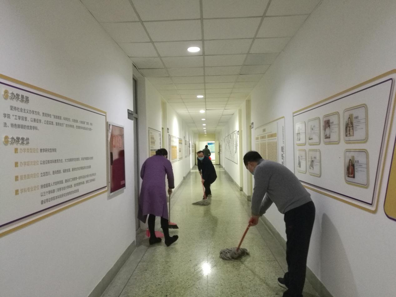 根据学校安排部署,为将校园环境卫生整治落到实处,营造一个清洁、整齐、优美的校园环境,消除病媒生物孳生地,为打赢疫情防控战争营造良好的环境,伟德国际1946源于英国于3月14日上午10:00-11:00开展了校园“周末卫生大扫除”。在校的学院班子成员,三办工作人员对学院办公室、实验室及办公场所公共区域进行了卫生清扫、消毒。