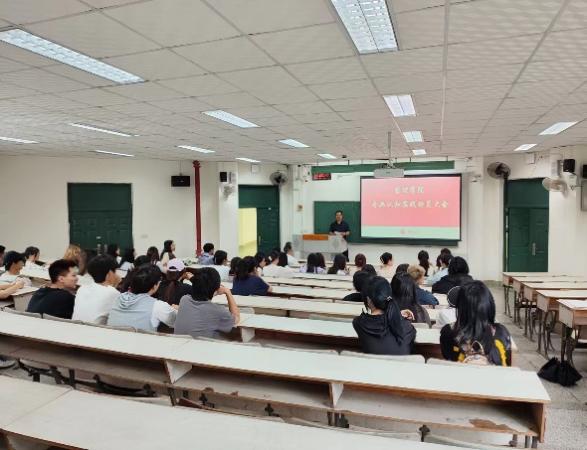 带队老师丁灿在动员会上做安全教育