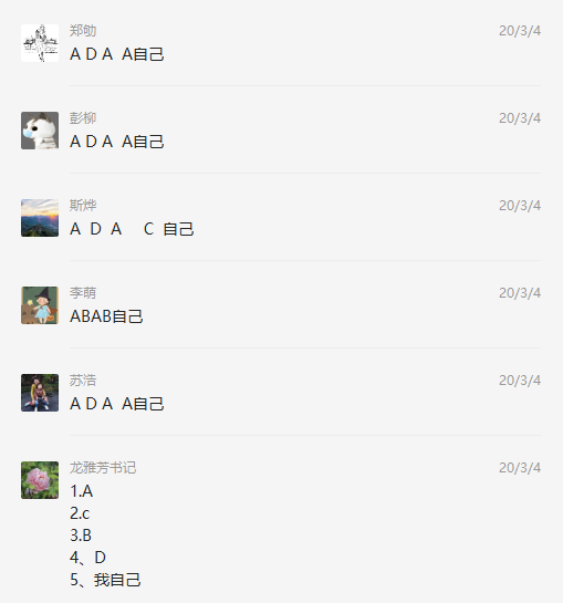 答题过程中,女职工们积极参与,争相抢答,大家热情高涨,气氛热烈,微信群内信息此起彼伏,好不欢乐。女职工们纷纷表示,这种特殊时期的特殊活动方式有创意,也有新意,在辛苦繁忙上网课的同时,也充分感受到了节日带给她们的喜悦和温暖。