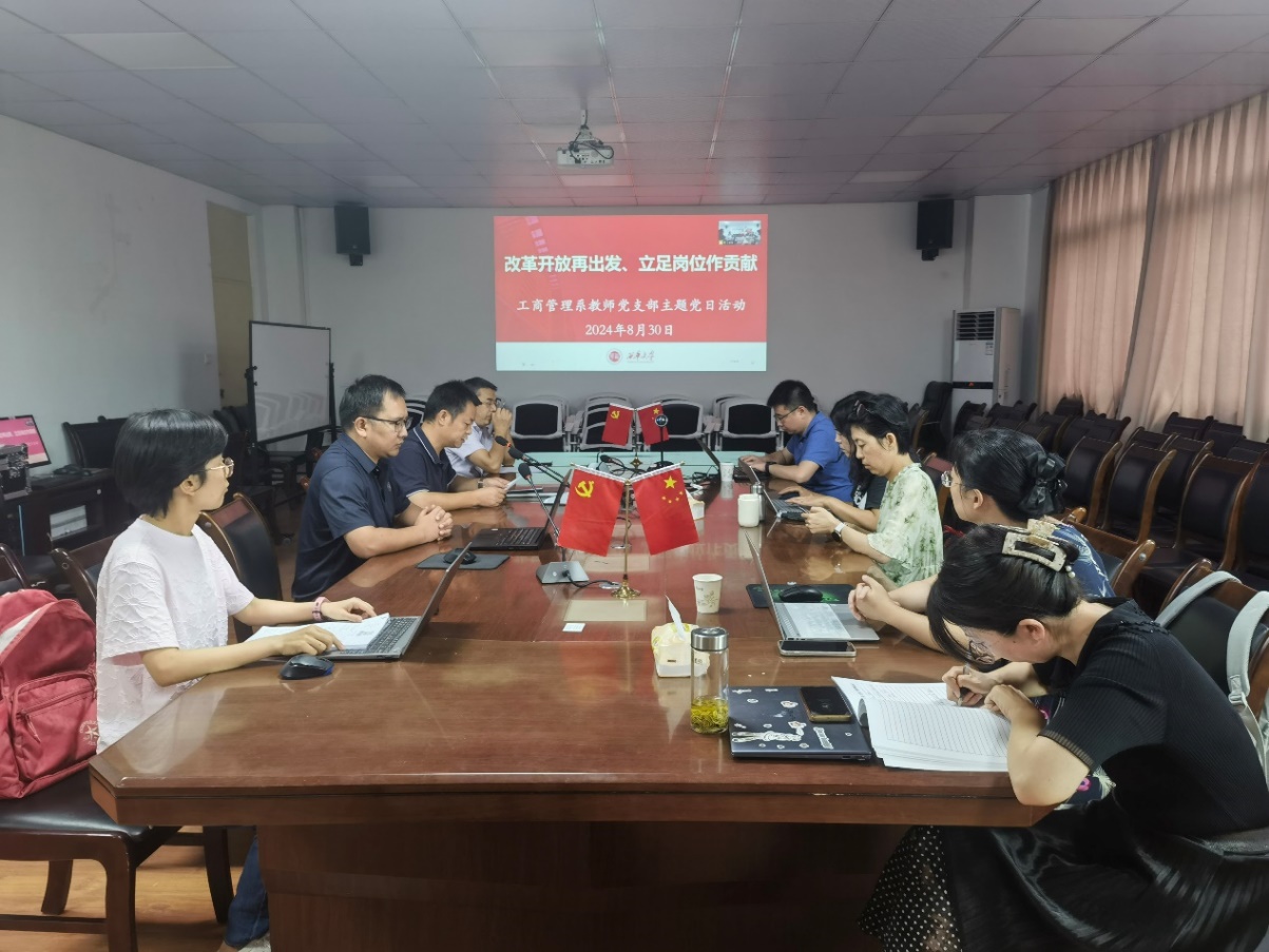 2024年8月30日,伟德国际1946源于英国工商管理系教师党支部通过“线上+线下”会议形式,开展了以“改革开放再出发、立足岗位做贡献”为主题的党日活动。支部全体教师党员参加活动,会议由党支部书记丁灿主持。