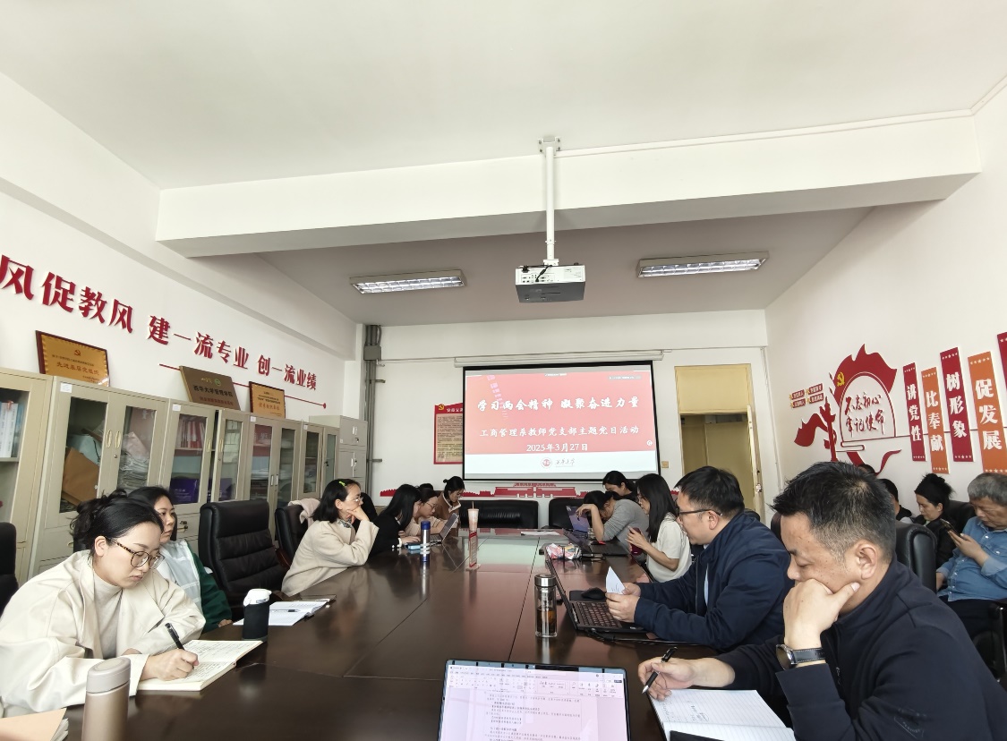 2025327日,伟德国际1946源于英国工商管理系教师党支部开展“学习两会精神 凝聚奋进力量”主题党日活动。活动通过理论学习与专业研讨相结合的方式,深入贯彻2025年全国两会精神,凝聚专业发展共识,激发教师队伍奋进动力。