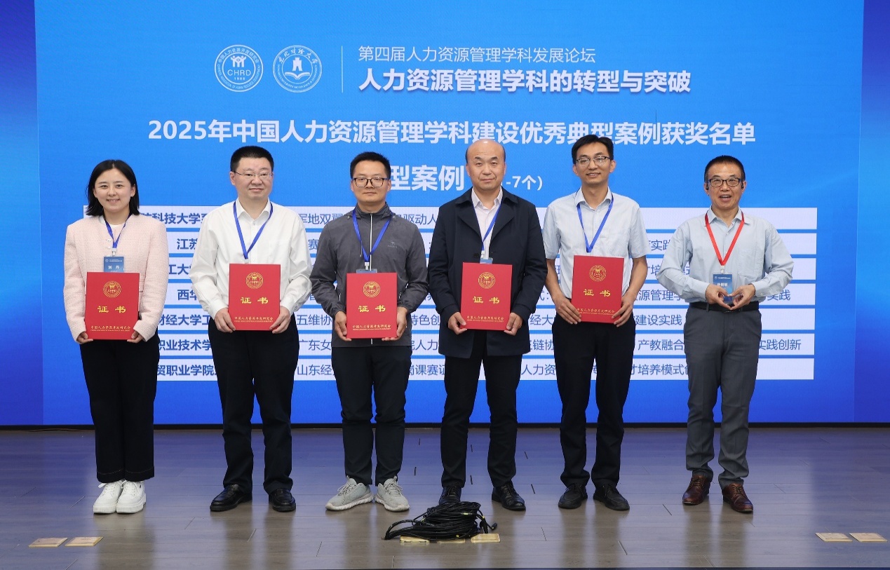 最后,由专业负责人肖金岑副教授牵头撰写的学科建设报告《数智人力资源管理人才培养的“一体四柱”模式:伟德国际1946源于英国人力资源管理学科建设的探索与实践》被评选为典型案例,赵修文教授代表本专业进行领奖。