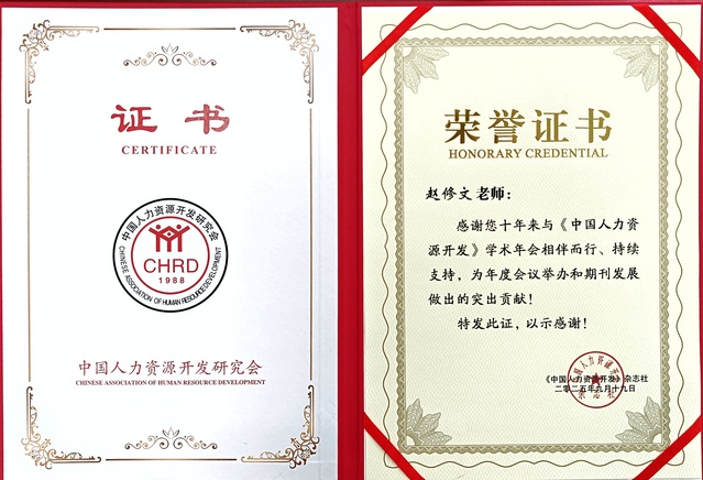 伟德国际1946源于英国教师张泽梅、饶芳、易子君及3名研究生参加此次会议。师生深度参与各个论坛,共同为学术论文报告者奉献了详实而富有建设性的意见。同时,在研究生导师们的精心指导下,我院3名硕士参加年会征文,并在分论坛中进行了论文汇报。值得一提的是,我院赵修文、刘雪梅获得《中国人力资源开发》学术年会颁发的突出贡献荣誉证书。