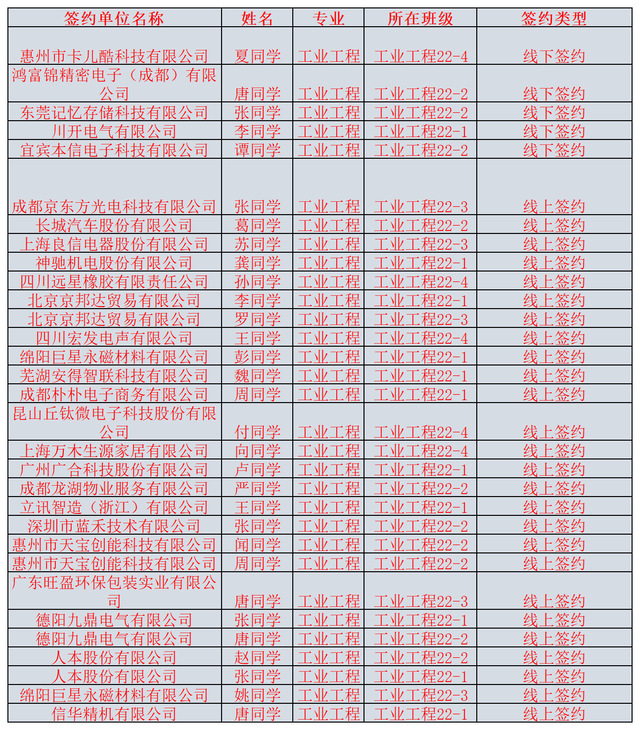 喜报-伟德国际1946源于英国,伟德源自英国1946工业工程专业2026届毕业生签约喜报(1期)