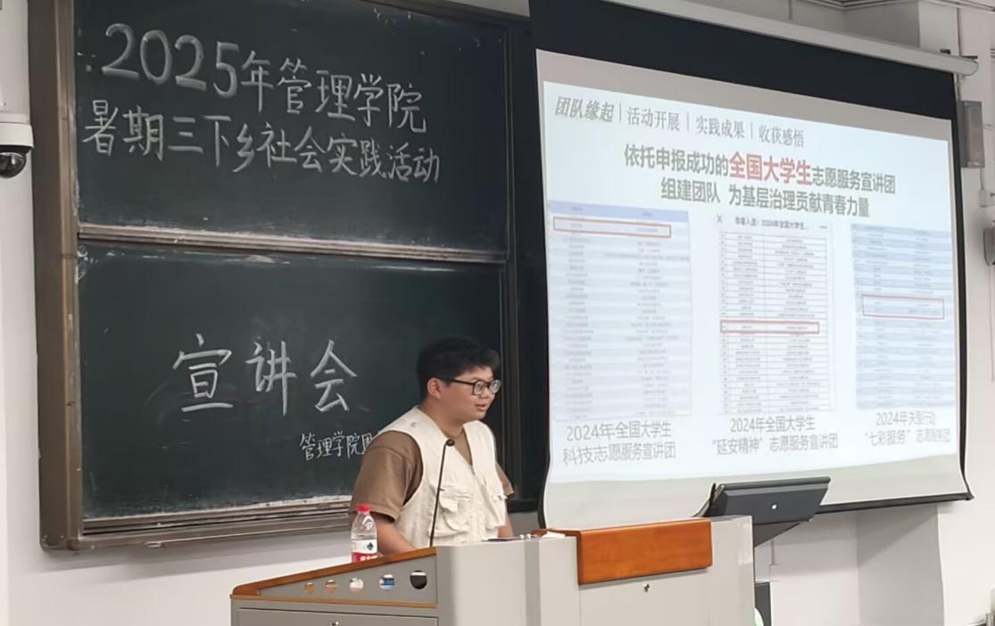 本次培训紧扣“三下乡”服务实际需求,设置了“理论讲解+案例分析+互动问答”三大环节。培训中,学院团委书记李思琪老师首先解读了本年度“三下乡”活动的整体部署、服务内容与安全纪律要求,着重强调了乡村服务中的人身安全、财产安全及舆情规范,提醒志愿者们始终以严谨、务实的态度开展服务。随后,往届优秀“三下乡”志愿者代表分享经验:结合不同服务场景,讲解与村民、乡村儿童的沟通技巧,分享调研数据收集,还针对乡村生活适应、突发状况应对等问题给出具体建议。