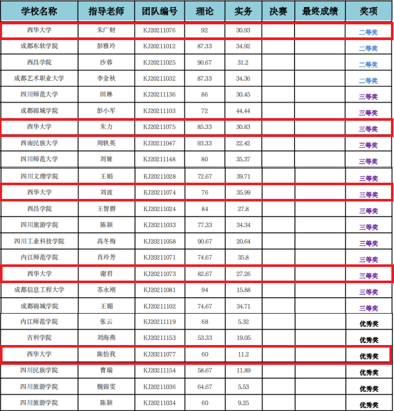 2021年(第五届)四川省大学生会计技能大赛成绩公示