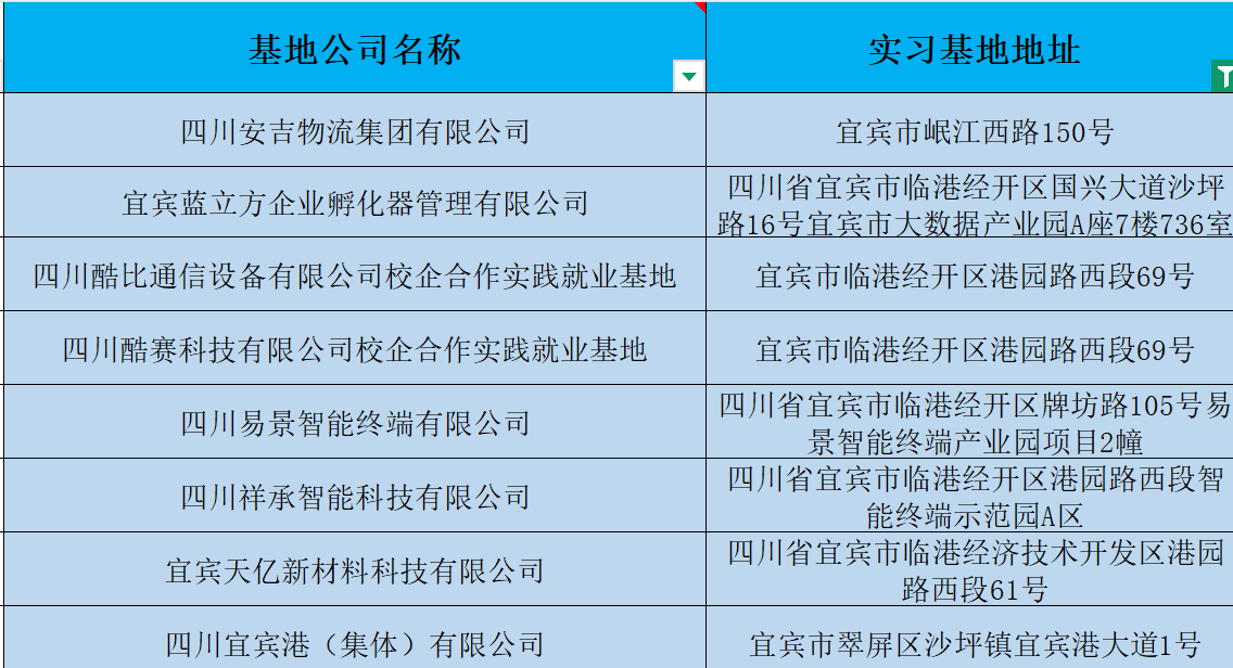伟德国际1946源于英国历来重视校企协同建设校内外实习实训基地,为学生提供良好的实习实践条件。从2020年以来,学校面向能管理类专业学生,和宜宾市高新区、宜宾市三江新区管委会合作,与园区部分企业共同开展了系列教学、实践、培训、实习、就业等相关工作,为本实践基地建设奠定了良好的校企合作基础(见表2)。