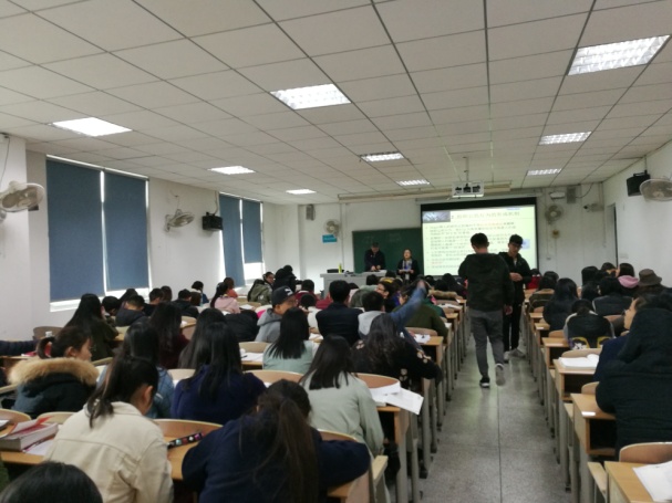 在谢开勇老师的组织行为学B的下课时间,小干事们走进刚刚下课的教室,向谢老师问好,征得老师同意后对同学们进行了一次查课点名。这是两名小干事第一次去查课,面对大自己一届的学长学姐们还是有点小忐忑的,不过小干事们在查课时认真规范,对老师和同学们做到礼貌负责。