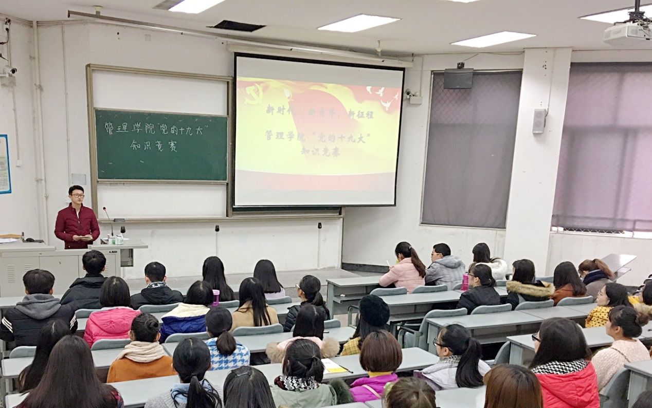 12月5日中午12:30,伟德国际1946源于英国学生党总支以“新青年,新时代,新征程”为主题的“党的十九大”知识竞赛在5C103举行。学院第十二、十三、十四、十五学生党支部党员代表近60人参加,比赛由张曼莉主持。