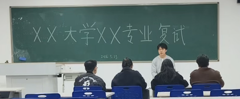 本次模拟面试严格对标高校研究生复试的实际流程,采用“全真情景+专业点评”的形式展开。活动现场特别邀请四位具有丰富研究生招生经验的导师担任主考官,1名同学担任复试秘书,设置了包括自我介绍、专业问答、综合素质测评及群体讨论等多个环节。参加同学按照抽签顺序依次进入“面试间”,围绕学业背景、科研经历、学术兴趣与未来规划等问题展开陈述与交流,充分体验真实复试的节奏与氛围。