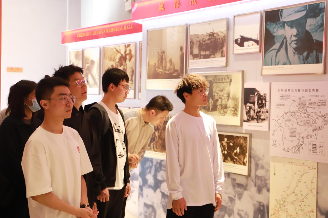 上午,30余名师生党员到达成都战役纪念馆,认真聆听讲解员的解说,观看馆内集中展示的文物、影像图片、书籍、烈士自传等红色记忆传承,从不同角度、不同载体了解了英勇的人民解放军征战西南、决战川西、解放成都的战斗历程,深刻感受了先烈们为革命不怕流血牺牲的崇高精神。