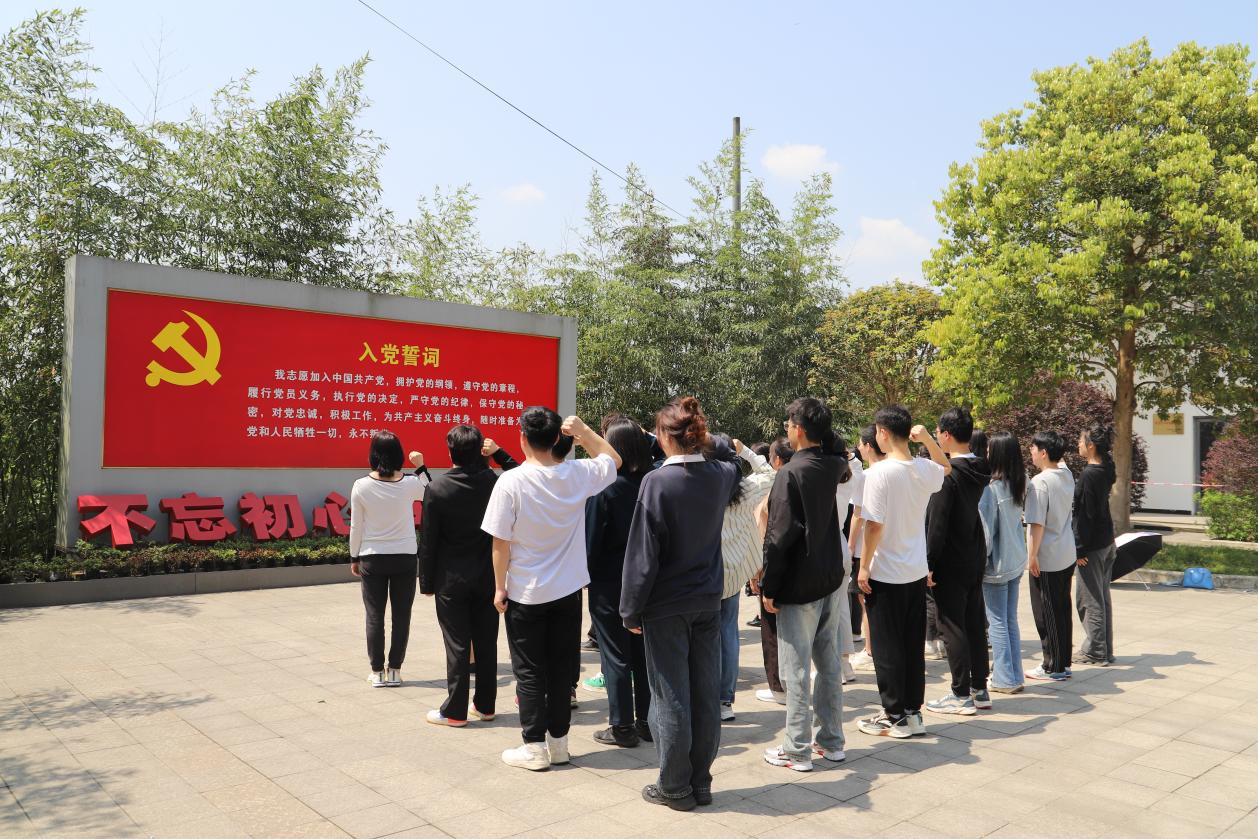 走出纪念馆,在鲜红的党旗和庄严的氛围中,全体师生党员在物流管理与物流工程专业本科生党支部书记李思琪的带领下,重温入党誓词,表达对党的忠诚,牢记入党初心。