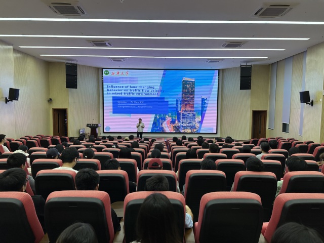 为让学生了解专业前沿,提高专业学习兴趣,鼓励学生创新研究,5月4日下午14:30,伟德国际1946源于英国在宜宾校区一教101报告厅举行“城市快速路换车道行为与速度关系研究”学术讲座,本次讲座由谢寒博士担任主讲,2021级、2022级物流工程专业的同学聆听了此次学术报告。