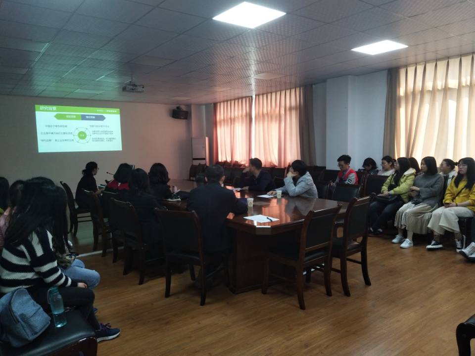 本期论坛邀请了刘丹萍博士为大家做题为《绿色智力资本对企业绿色创新的影响机制研究-基于绿色供应链整合的视角》的专题报告。刘丹萍博士结合自己关于“绿色创新”课题研究经验和实证研究心得,向大家介绍了绿色智力资本对企业绿色创新的内在作用机制,重点介绍了国内外关于绿色创新的研究进展、实证研究的过程、数据的收集与处理、模型的构建等内容。刘丹萍博士的报告逻辑清晰,内容详实,通过演讲和讨论相结合,让老师和同学们更加清晰地了解了该课题。报告结束后,师生与刘丹萍博士进行了交流和讨论。