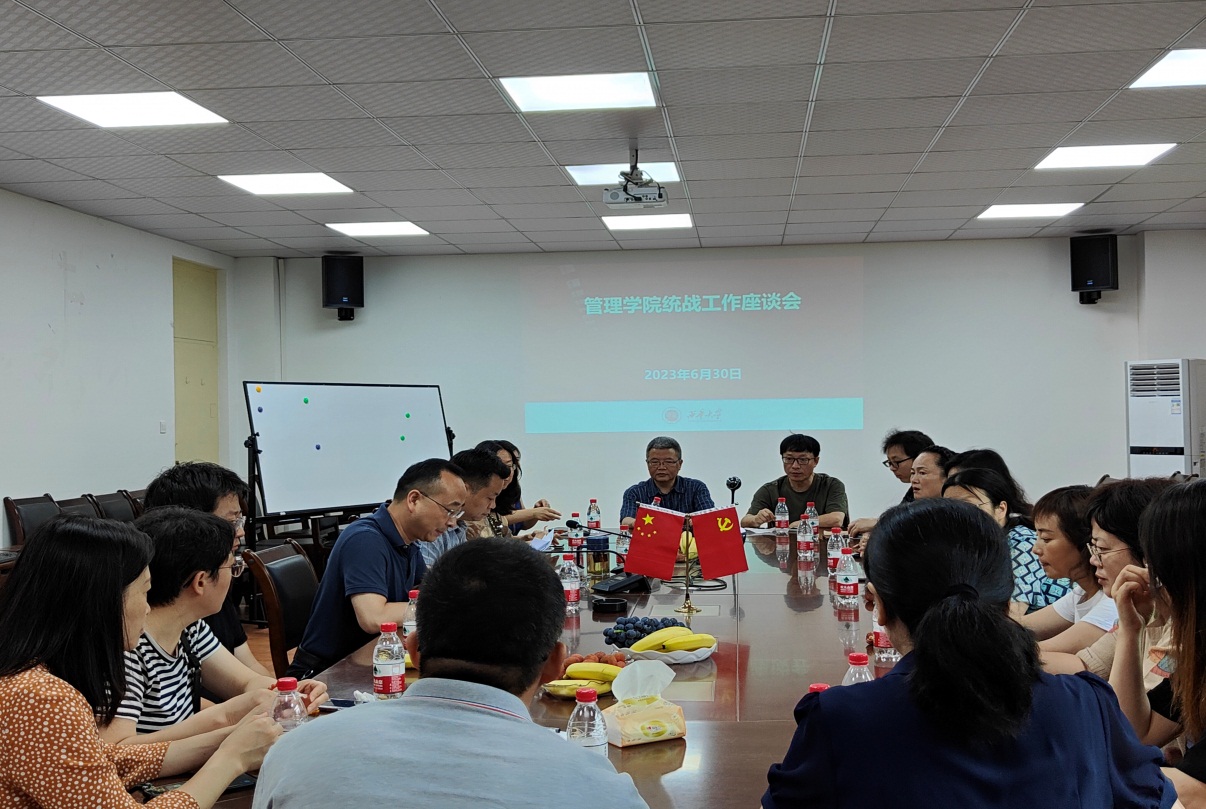 2023年6月30日,伟德国际1946源于英国在3E402会议室召开了统战工作座谈会。学院党委书记肖东华出席会议,学院民主党派人士、无党派人士、党外知识分子代表参加了会议。会议由学院统战委员、副院长牟绍波主持。