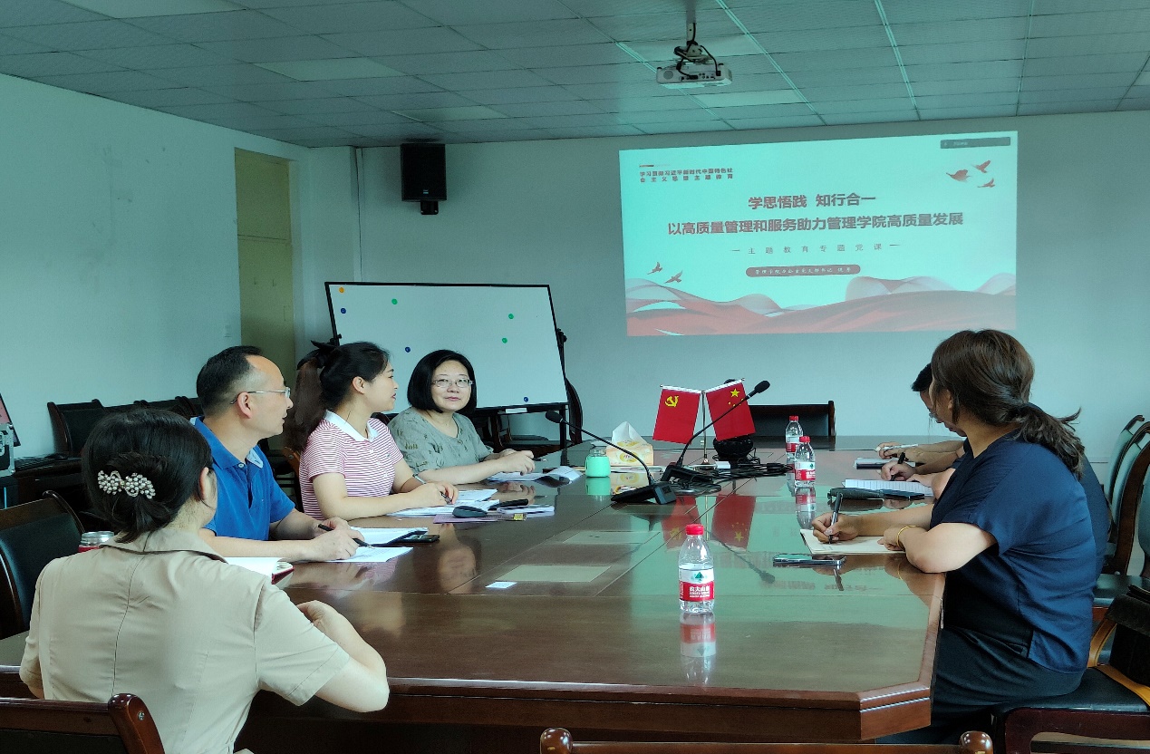 接着,她结合办公室党支部实际,围绕“不断提升政治能力、思维能力和实践能力”进行了讲解和体会分享。她提出,党员同志要不断提升政治能力,做立场坚定的“明白人”,提升思维能力,做见微知著的“思考者”,提升实践能力,做起而行之的“实干家”。办公室是学院决策部署落地落实的关键,政治执行力是最核心的能力;办公室工作要有大局意识和整体思维;要增强前瞻性和预见性;要增强工作主动性,及时有效沟通;要把握好工作的尺度和界限;“真干”实干”,脚踏实地守好责任田,全力以赴抓落实。