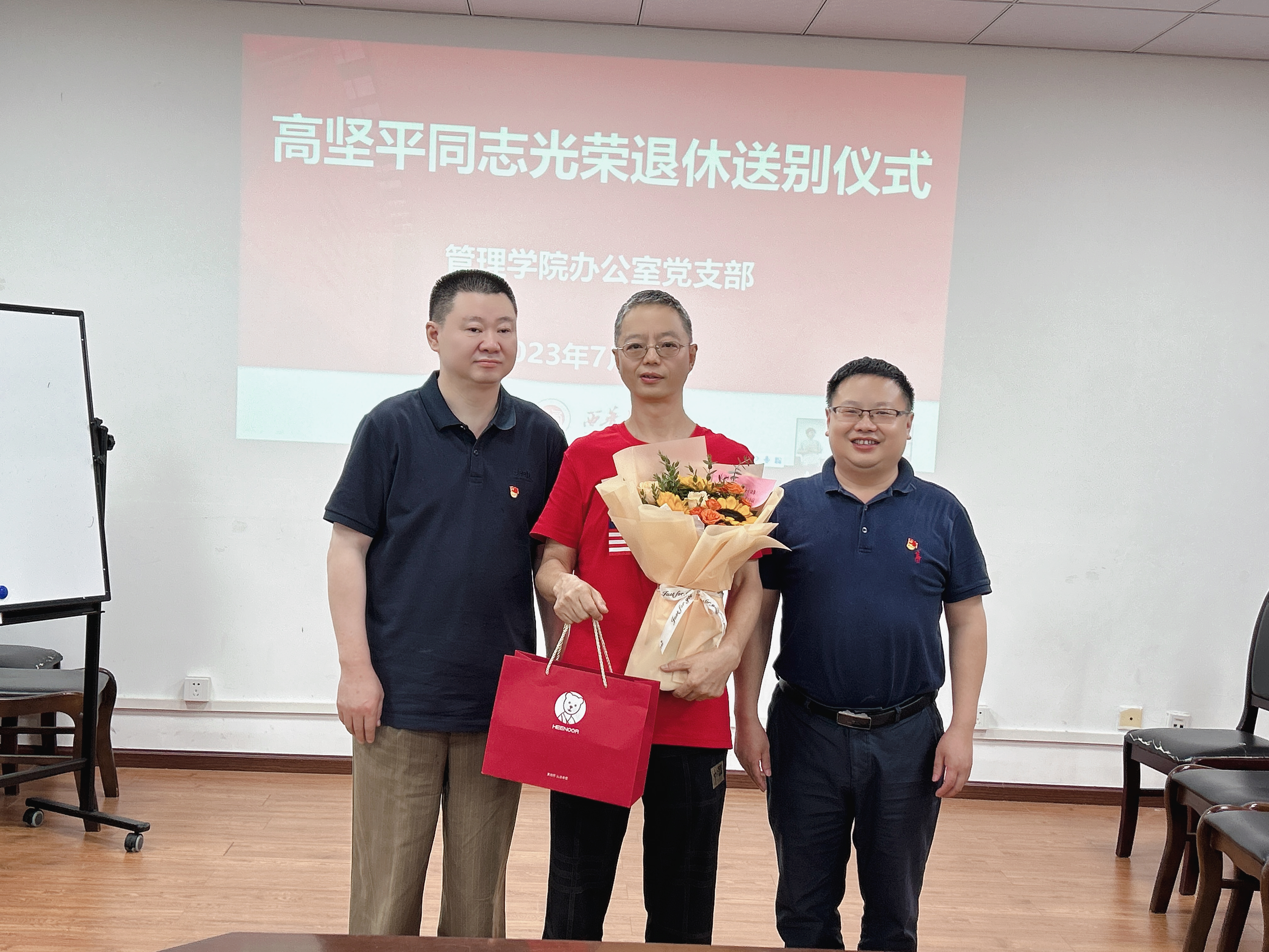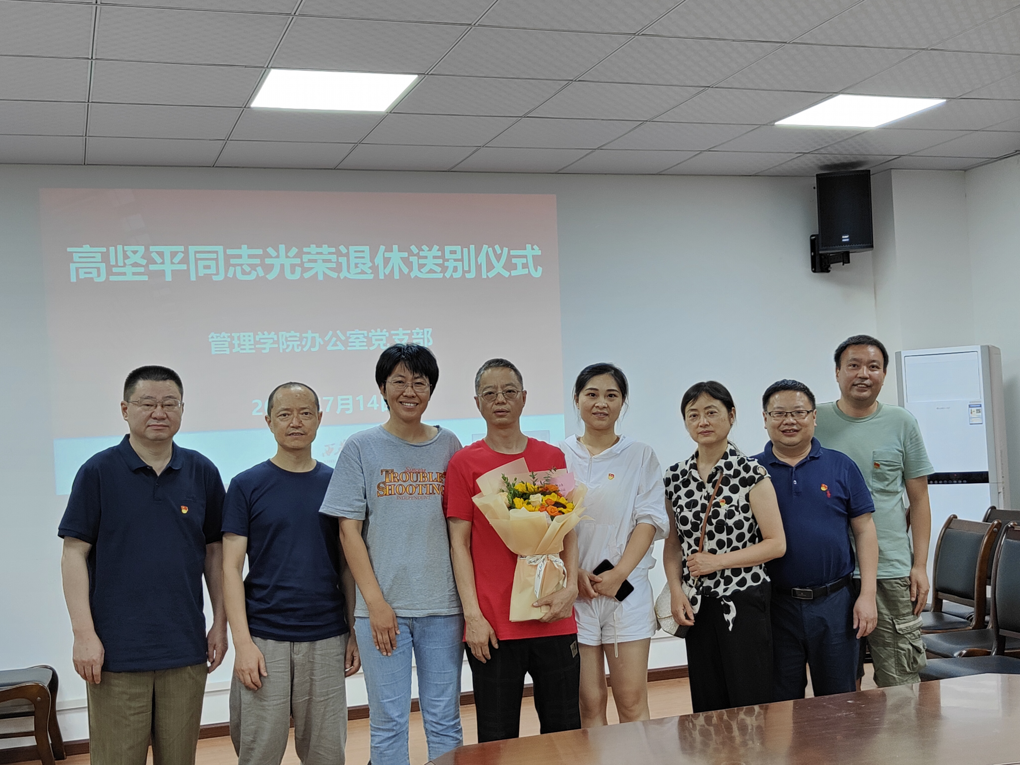 714日,伟德国际1946源于英国办公室党支部在3E-402会议室开展主题党日活动,欢送退休党员高坚平同志。